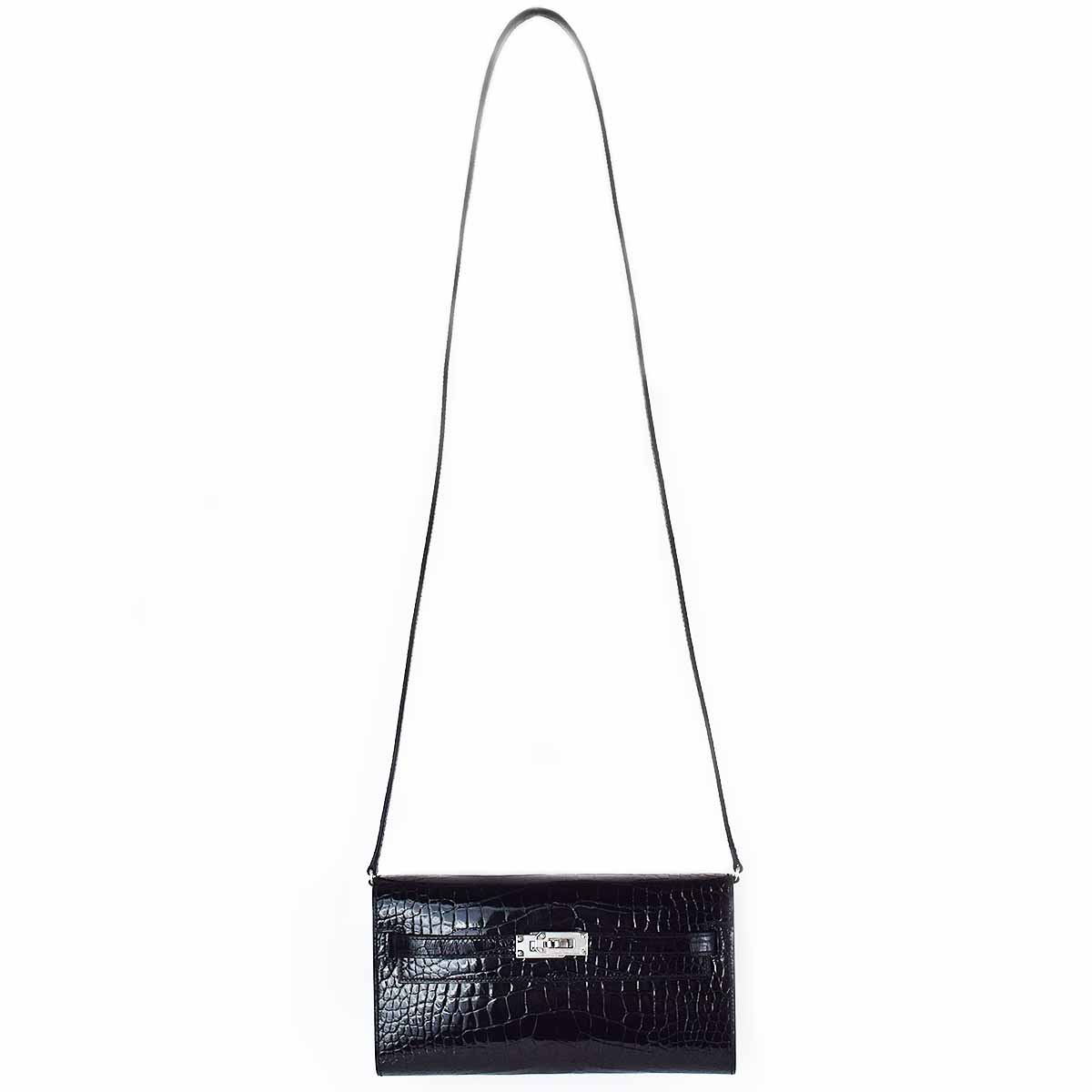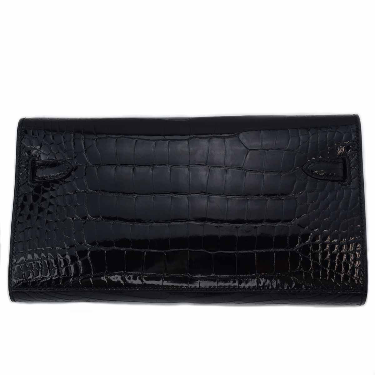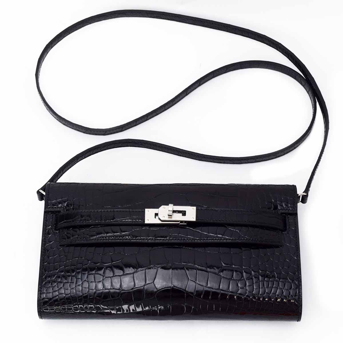 【未使用品】Hermes エルメス Kelly to go ケリー トゥーゴー ウォレット 長財布 クロコダイル アリゲーター シャイニー ブラック ノアール 黒 シルバー金具 ストラップ Y刻印 【送料無料】レディース ショルダーバッグ【代引き無料】21260401