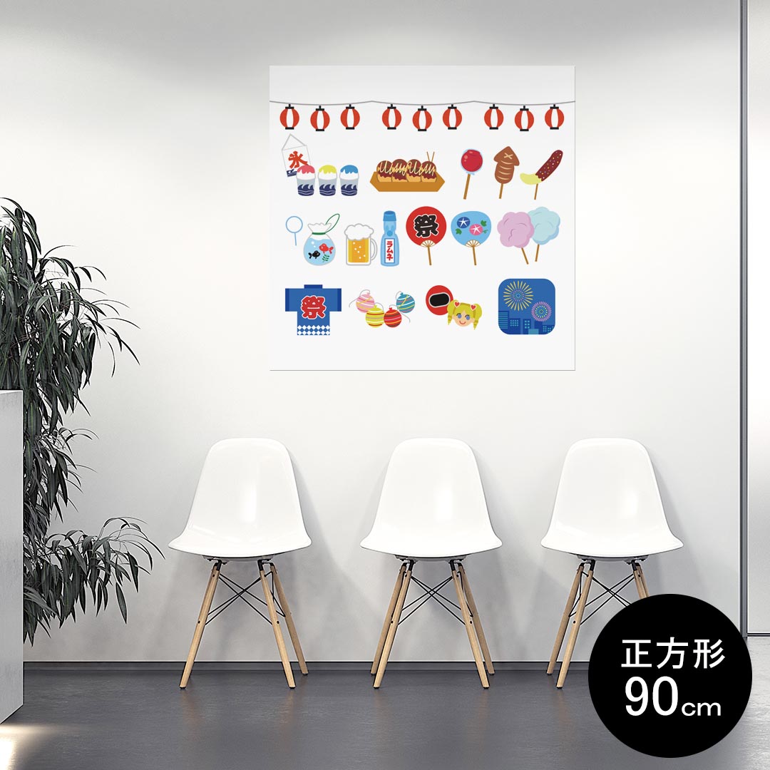 ポスター ウォールステッカー シール式ステッカー 飾り 90×90cm Lsize 正方形 壁 インテリア おしゃれ 剥がせる wall sticker poster 014120 夏 祭り うちわ
