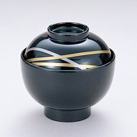 丸福椀 総黒二色ライン Z350-164汁椀 汁碗 味噌汁椀 お椀 おわん 割れにくい 軽い 軽量 蓋付き 業務用 業務用食器 旅館