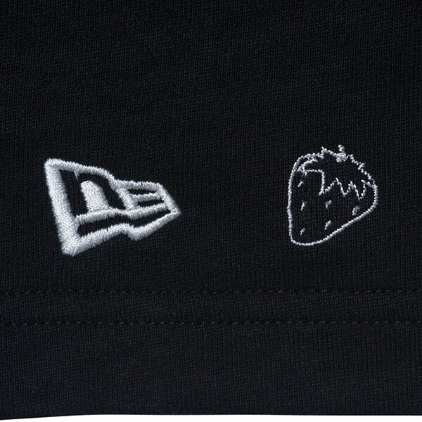 左袖のフラッグロゴ横には苺のイラストをレイアウトしています。